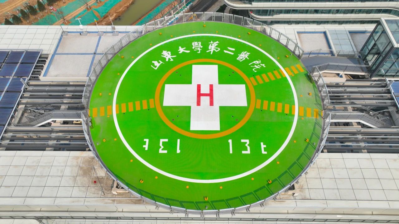 醫院樓頂設有一座直徑為25米的圓形停機坪,配備空中120急救系統,最大起飛重量13噸,可滿足國內所有民用救援直升機機型起落,形成24小時全天候響應的空中救援通道,實現山東半島危重患者快速轉運救助,提升當地公共突發事件應急處置效率,進一步完善山東省應急醫療救援體系。