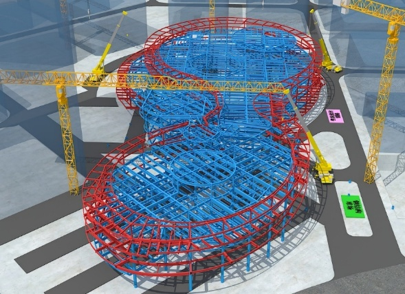 “共享云臺(tái)”以流暢多變的鋼結(jié)構(gòu)造型將“云”的形態(tài)具象為“共享”平臺(tái),為了完美演繹雙曲飄帶造型屋頂,項(xiàng)目應(yīng)用三維激光掃描+BIM建模技術(shù),將施工誤差控制在2毫米以內(nèi)。