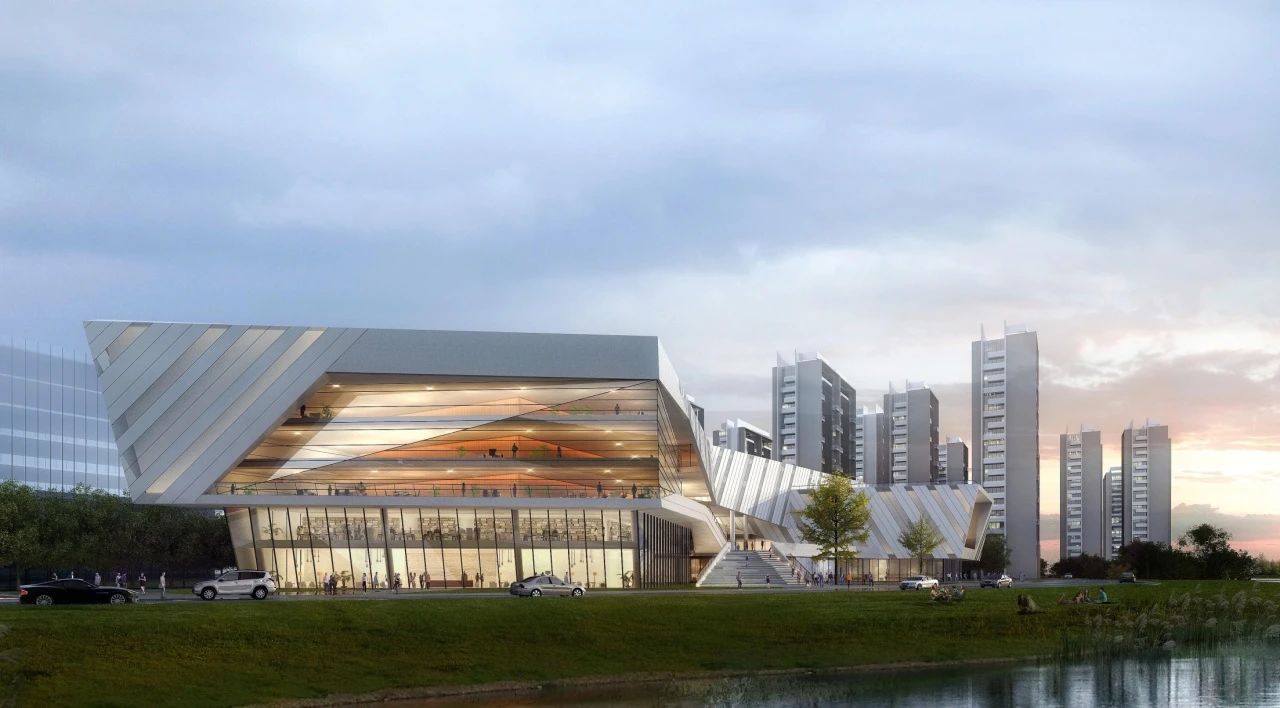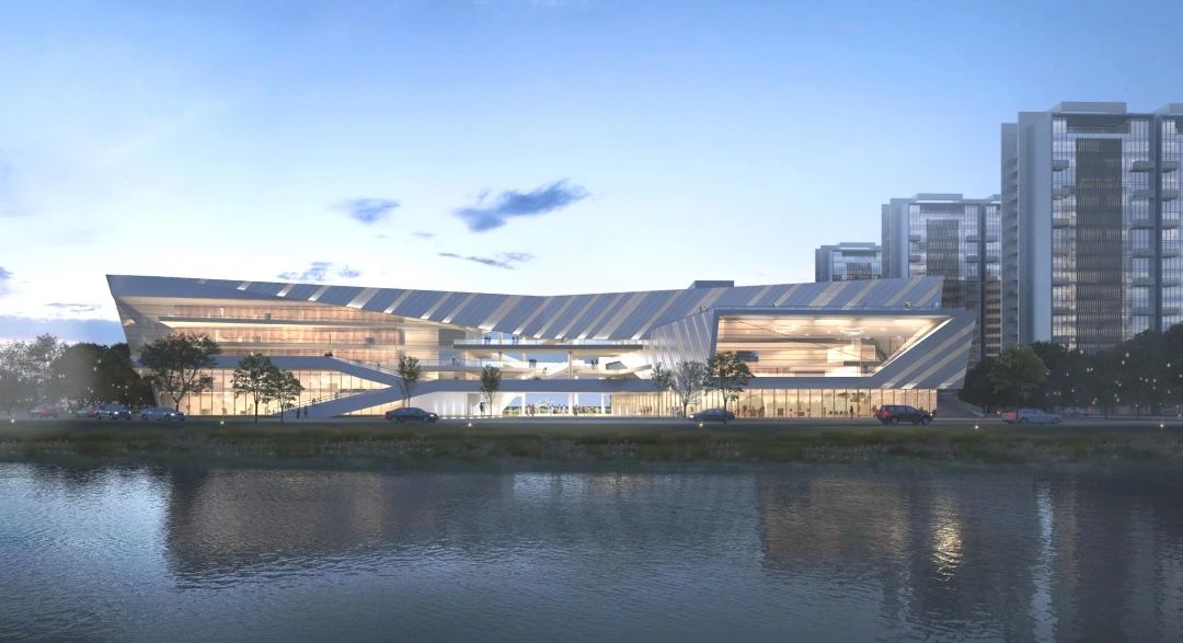 項目以“建筑與人、景觀藝術(shù)、城市對話”為核心理念,采用大面積轉(zhuǎn)角玻璃幕墻和鋁板墻面,形成復(fù)雜造型與外立面條狀紋理,與濱水景觀相呼應(yīng),打造極具未來感的建筑形態(tài)。