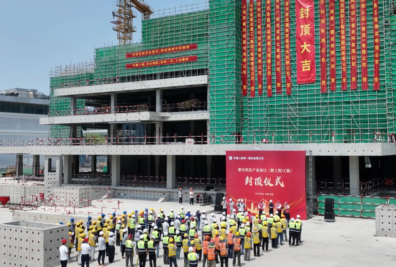 鐵軍團隊筑精品,嶗山之畔奏凱歌。5月29日,中建八局一公司承建的青島歌爾科技產業項目二期首棟單體主體結構封頂。歌爾股份有限公司高級副總裁蔣洪寨,北京帕克國際工程咨詢股份有限公司副總經理李子鵬,中建八局一公司副總經理李云,以及歌爾科技有限公司、一公司青島公司相關負責人、工友代表參加封頂儀式。