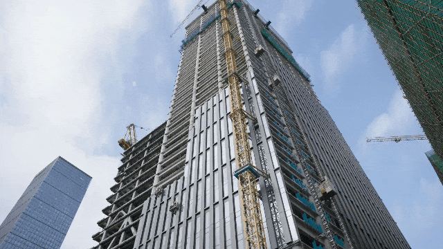 項目通過方案對比及設計深化,提前規劃大型塔吊附著預埋點,避免與單元幕墻板塊碰撞,打造深圳首個落地大噸位塔吊異形附著結構,實現全方位無拉鏈式幕墻安裝,助力項目完美履約。
